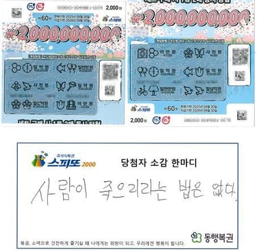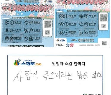 After scratching two Spitto 2000 tickets at home, this lucky winner discovered both had hit the jackpot, securing him 2 billion won ($1.5 million) in total. His reaction? Pure poetry: "When all seems lost, life still finds a way."